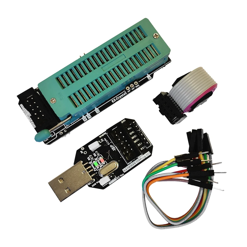 پشتیبانی از همه AVRهای سری ATMega- ATiny- AT۹۰ پشتیبانی از همه ویندوزهای(۳۲ بیتی و ۶۴ بیتی) ۱۰ - ۸.۱ - ۸ - ۷ - XP نصب آسان درایور در همه نسخه های ویندوز فایل راهنمای جامع فارسی(نصب درایور و پروگرام کردن) دارای فیوز ومدارمحافظUSBرایانه دربرابر اضافه جریان اتصال مستقیم به USB رایانه(بدون نیاز به کابل رابط) دارای زیف سوکت ۴۰ پین (Zif Socket) سازگار و منطبق با پروتکل STK۵۰۰ حاوی ۶عدد سیم جامپر نر به ماده رنگی قابلیت پروگرام کردن میکروهای روی برد از طریق سیم جامپرها کانکتور ISP جهت برنامه ريزی ميکرو کنترلر داخل مدار به همراه کابل رابط۳۰ سانتی (فلت۱۰رشته باکانکتورIDC۲x۵) دارای خروچی پین های MOSI-MISO-RST-SCK-VCC-GND به صورت مجزا دارای دیپ سوئیچ تنظیم سرعت پروگرام کردن میکرو دارای LED های نشانگر پاور و وضعیت برنامه ریزی قابلیت برنامه ریزی کلیه فیوز بیت ها قابلیت قفل کردن میکرو از طریق Lock Bit ها دارای پین های اختصاصی برای پشتیبانی ازکریستال خارجی ابعاد بسیار مناسب و کوچک (فقط ۳x۱۲ سانتیمتر) دارای بخش آموزش نصب درایور در فایل راهنمای محصول به زبان فارسی دارای بخش آموزش پروگرام کردن میکرو از طریق نرم افزار ProgIsp در فایل راهنمای محصول به زبان فارسی پشتیبانی از نرم افزارهای CodeVision و Bascom و AVR Studio و Prog ISP و Khazama AVR Programmer و AVRDUDE و eXtreme Burner بدون نیاز به تغذیه خارجی (دارای جامپر اختصاصی تعیین منبع تغذیه USB یا برد هدف) دارای پایه های نگه دارنده دانلود بروزترین نسخه درایور ازطریق وبسایت سازنده دسترسی ساده به فایل هاازطریق اسکن بارکد روی جعبه محصول ارائه عملکردی حرفه ای در عین کاربری بسیار آسان پشتیبانی کامل از طریق وبسایت سازنده