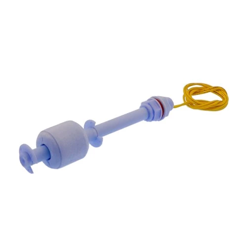 سنسور تعیین سطح مایع - سوئیچ شناور p100، یک سنسور کاربردی با مداری بسیار ساده است که برای کنترل و تعیین سطح مایعات مانند آب، روغن و غیره به روش مغناطیسی استفاده می شود. این سوئیچ سنسور، دارای حداکثر ولتاژ سوئیچینگ 220 ولت و حداکثر جریان سوئیچینگ 0.5 آمپر است و نیازی به تامین برق ندارد. این سنسور در سیستم های خنک کننده، مخازن مایعات، پمپ ها و سیستم های کنترل سطح مایعات مورد استفاده قرار می گیرد. سوئیچ شناور p100، به طور عمودی و شناور روی سطح مایع قرار می گیرد. این سنسور، شامل یک شناور می باشد که روی یک میله قرار گرفته است و با بالا و پایین شدن سطح مایع، این شناور بر روی میله حرکت می کند. داخل این میله یک رید سوئیچ تعبیه شده که در بستری از یک حلقه مغناطیسی قرار گرفته است. با تغییر سطح مایع و حرکت شناور، ماده مغناطیس، یک میدان مغناطیسی ایجاد می کند که باعث فعال شدن رید سوئیچ خواهد شد. در حالت عادی، سوئیچ Normally Close است. زمانی که سنسور روی سطح مایع قرار بگیرد، به طوری که سیم ها در بالا قرار داشته باشند، و شناور بر روی میله حرکت کند و به سمت بالا برود، سوئیچ باز می شود و تغییر وضعیت می دهد. این تغییر وضعیت می تواند به عنوان سیگنالی برای نشان دادن سطح مایع و یا کنترل عملکرد سیستم، مورد استفاده قرار بگیرد.